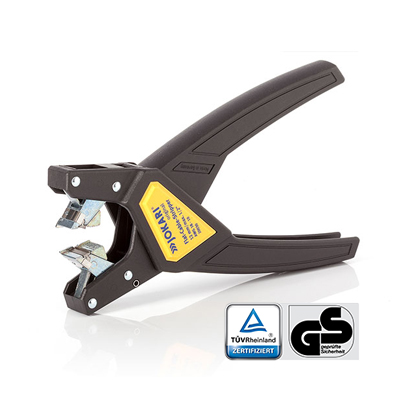 - Alicate Decapador de fio automático ergonômico para cabos planos isolados em PVC com largura de até 12 mm e diâmetros de 0,75 a 2,5 mm²;