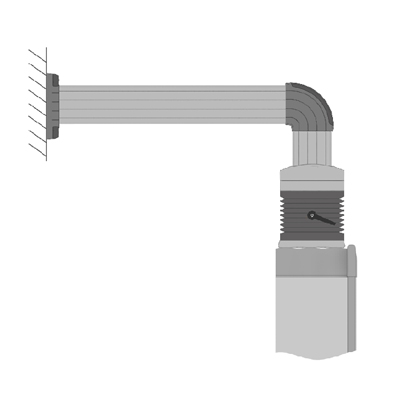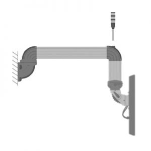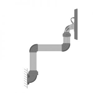 Braço Articulado Montado TK60-C20 – Base estática para fixação em superfície vertical, perfil horizontal com cotovelo 90º e suporte para painel, rotação 310º e inclinação +-45º, em alumínio