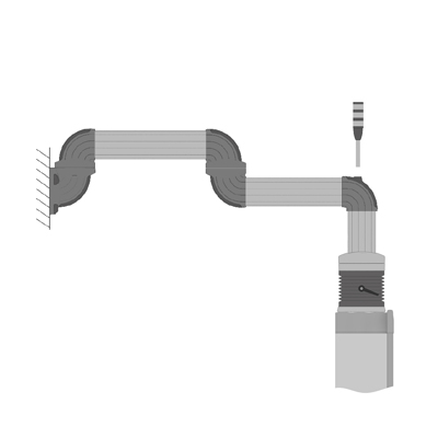 Braço Articulado Montado TK60-C8 – Base angulada 90º para fixação em superfície vertical, rotação 315º, perfil horizontal com 2 articulações intermediárias, perfil vertical e suporte para painel com rotação 310º e inclinação +-45º, em alumínio