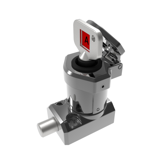 O módulo de intertravamento por pino é fabricado em aço inox 316 ou ferro fundido. Pode ser instalado em portões de acesso, janelas de inspeção, ou proteções mecânicas móveis. Este item recebe, normalmente, uma chave do sistema de bloqueio de potência/comando ou de uma estação de chaves intercambiáveis.