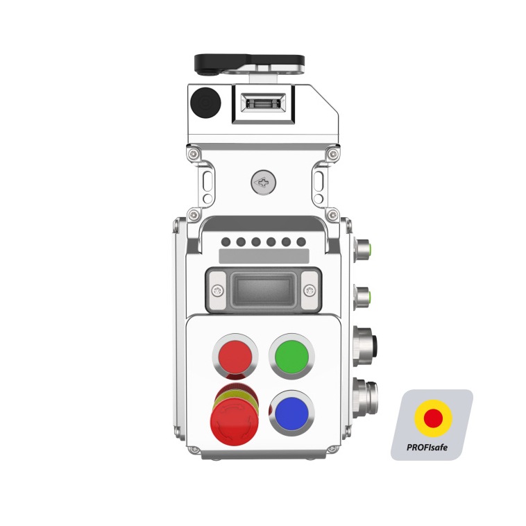 Com PROFINET / PROFIsafe, intertravamento RFID e botoeira integrada