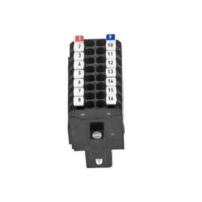 Conector 2X8 pinos, flange de fixação com parafuso (conectores marcados com entrada para cabo c/seções transversais máx. de 1,5 mm²) .
