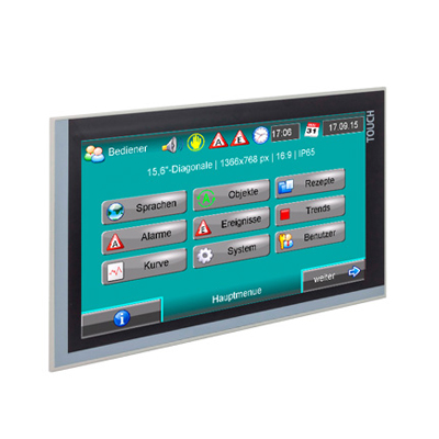 IHM 15.6″ TOUCHSCREEN, Colorida 65K, FLASH 48MB, 24VDC, 1366×768 Pixel, TFT, C/ 2xEthernet