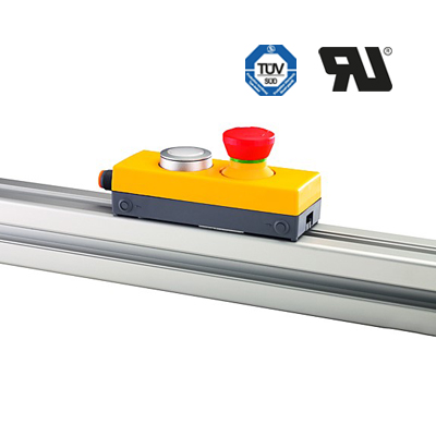 MBM128_NOOITI – Minibox com entrada de cabo M12 (8 polos) com parada de emergência e botão de pressão