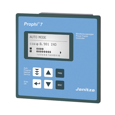 O controlador de fator de potência Prophi tem um eficiente comportamento de controle, a fim de operar todos os estágios de capacitores com o mesmo número de ciclos de comutação e tempo de operação (o mesmo tanto quanto for possível). Isso aumenta significativamente a vida útil de todo o sistema. Possui a opção de vir equipado com saídas a transistores. O controlador, além de algumas medições convencionais de parâmetros de energia como tensão, corrente, frequência, harmônicas, distorção e demanda, faz registro de alguns eventos de qualidade de energia, como elevações e abaixamentos de tensão, ou mesmo alarme de temperatura elevada. Possui abrangente teclado de navegação.