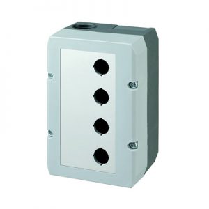 S44_04 – Gabinete de aço inox equipado com prensa-cabo para montagem em trilho de perfil – 4 orifícios de montagem