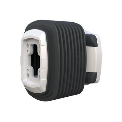 Acoplamento rotativo para conexão entre painel e braço articulado, com ângulo de rotação de 310º para perfil retangular 120x75mm e painel linha 150 ou superior, em alumínio