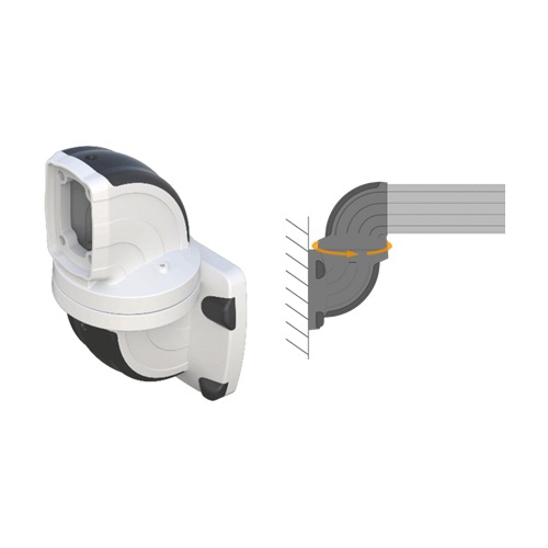 Acoplamento rotativo angulado em 90º para conexão entre painel e braço articulado, com ângulo de rotação de 350º, para perfil retangular 72x45mm e painel linha eco 090-eco e 120, em alumínio