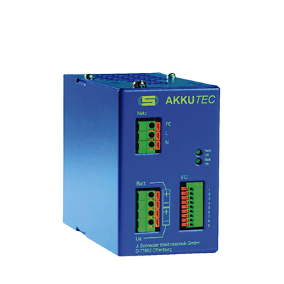 As fontes com armazenamento de energia por baterias da série AKKUTEC trabalham no modo de operação paralelo, e garantem pela conexão com as baterias de chumbo ácido uma operação segura e contínua de fornecimento CC, caso haja alguma falha na rede. O tempo de autonomia da bateria depende do estado da carga e da corrente de descarga.