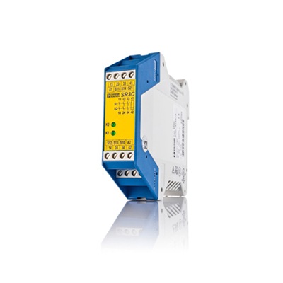 O SR3C é um dispositivo de comutação de segurança de parada de emergência universal com duas saídas de relé seguras que podem parar de forma rápida e segura as partes móveis de uma máquina ou sistema em caso de perigo.